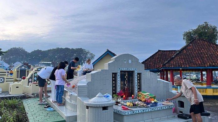 , BANGKA -- Sejak subuh hari, wangi dupa dan bau kertas sembahyang menguar dari TPU Sentosa Pangkalpinang.